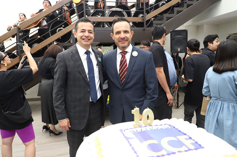 También estuvieron presentes el maestro José Gordon, el maestro Luis Cabrera, la maestra Tania Dolores Hernández García, directora del Instituto de Ciencias Biomédicas; el doctor Fausto Enrique Aguirre Escárcega, director del Instituto de Arquitectura, Diseño y Arte; el doctor Jesús Meza Vega, director del Instituto de Ciencias Sociales y Administración, además de la maestra Guadalupe Gaytán Aguirre, secretaria académcia y el doctor Salvador David Nava Martínez, secretario general, quienes atestiguaron una década de historia que confirma al CCF como un espacio donde la cultura no solo se exhibe, sino que se transforma en vínculo social.