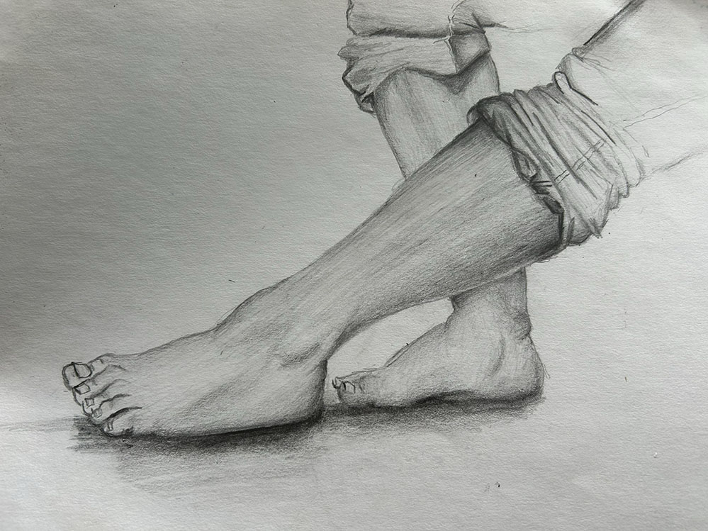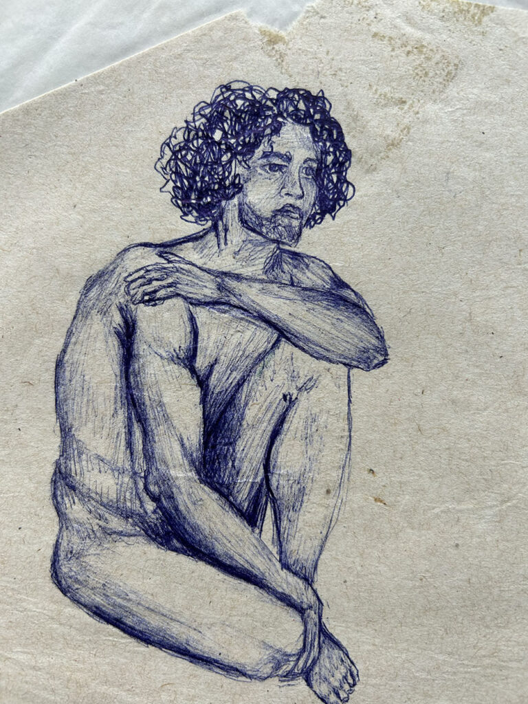 Mi archivo empezaba con lo más básico: tipos de sombreado, ejercicios de luz sobre objetos cotidianos, plantas, animales, estudios de anatomía. También estaba ahí algo que no cabía en lo técnico: el primer cuerpo desnudo que dibujé a mis 17 años. Esos dibujos eran mi tesoro.