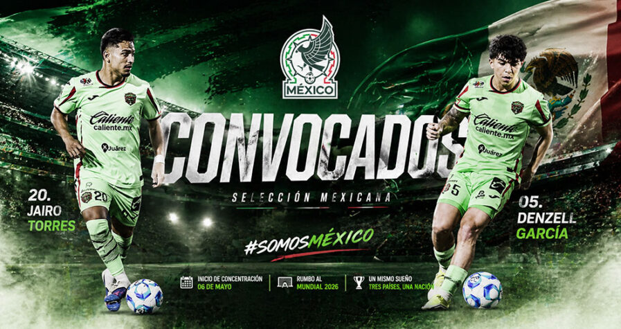 Los Bravos de FC Juárez confirmaron la convocatoria de dos de sus futbolistas a la Selección Mexicana de Futbol, en el arranque del proceso de preparación rumbo al Mundial que iniciará el próximo 11 de junio con sedes en México, Estados Unidos y Canadá.